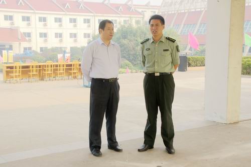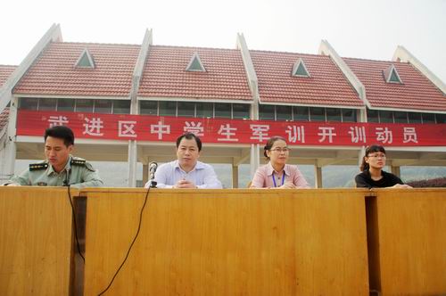 10月8日上午,三河口高级中学2010级高一新生军训营在武进国防教育训练中心隆重举行开营仪式。仪式由国防教育训练中心营长桂林海同志主持,河中2010级军训管理小组成员在主席台上就座。